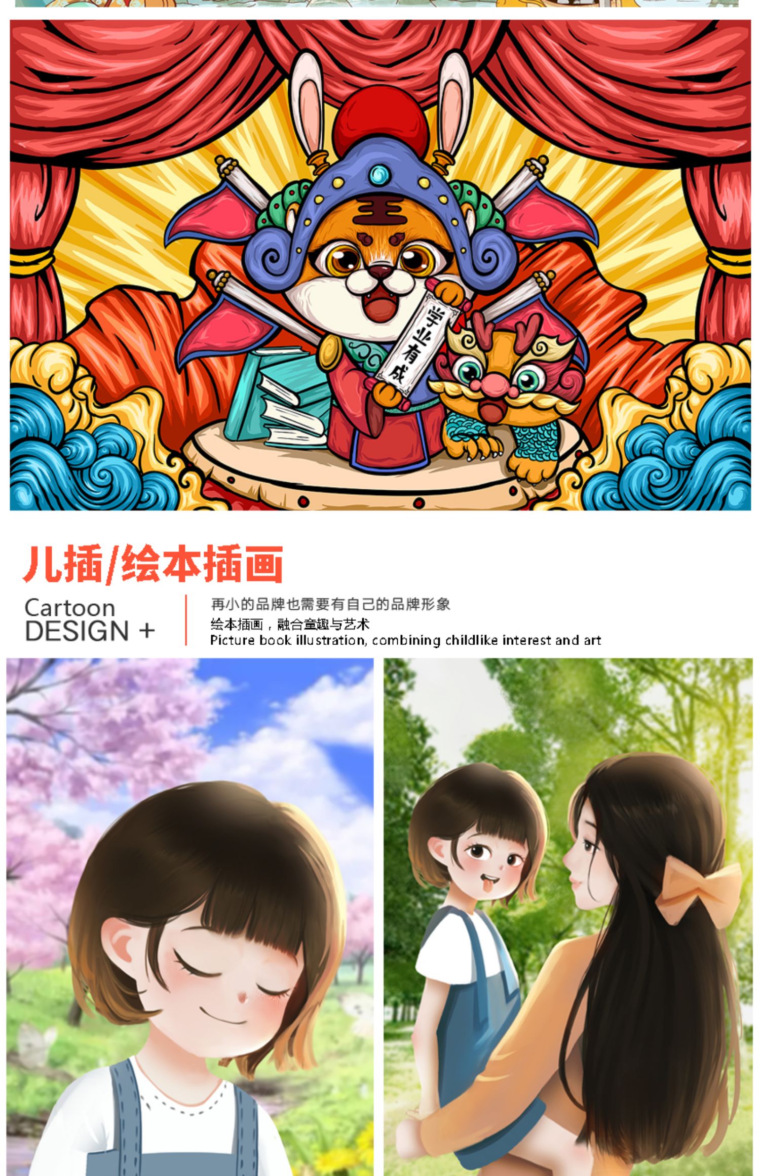 儿插/绘本插画:再小的品牌也需要有自己的品牌形象,绘本插画,融合童趣与艺术。我们的儿插作品充满想象力和创造力,能够吸引孩子们的目光。