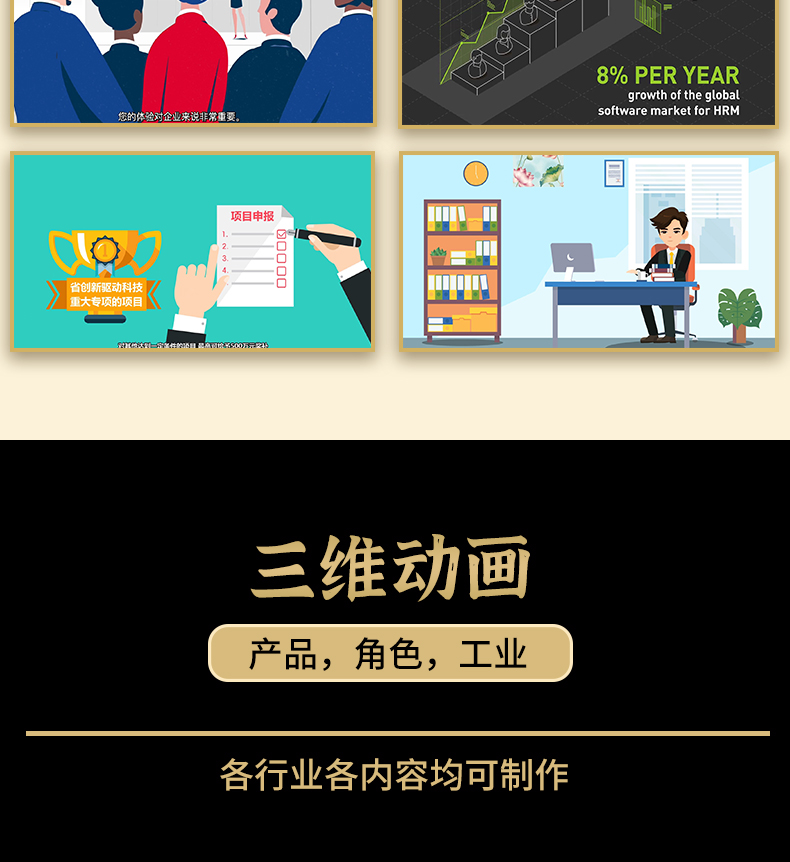 - 传源文件:收到尾款后,我们会将动画的源文件发送给您。源文件可以方便您进行后期的修改和调整。